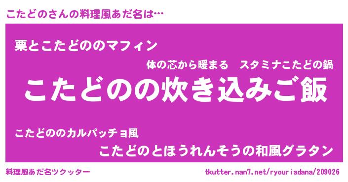 | ヘコむあだ名 | 『なまこ酢』『こたぷりん』 |