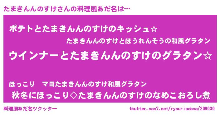 | 欧米人風あだ名 | 『たまきんんのすけクリステル』 |