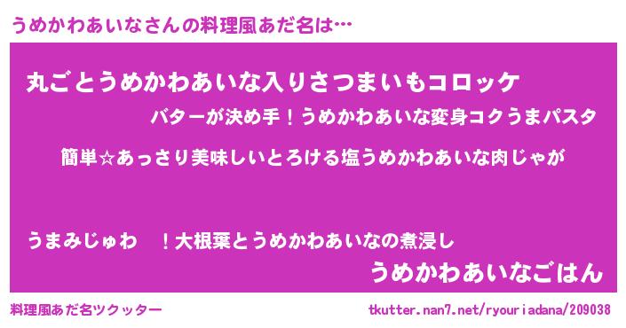 | ヘコむあだ名 | 『うめかわあいな(爆)』『なまこ酢』 |