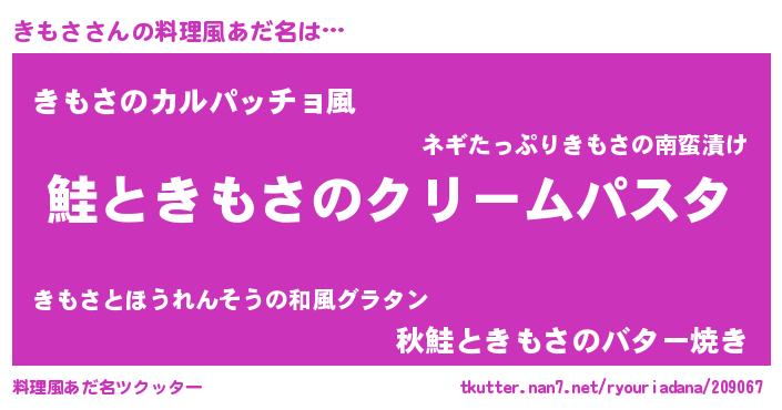 | 女子向けラノベタイトル風あだ名 | 『死神きもさの再婚』『きもさの契約王妃』 |