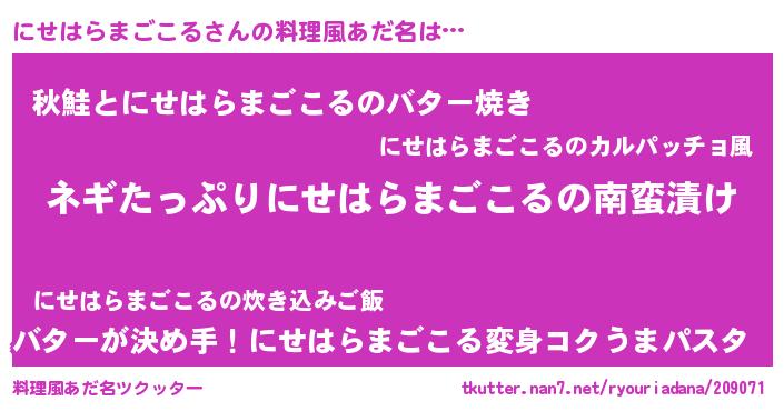 にせはらまごこるさんの料理風あだ名をツクッター!