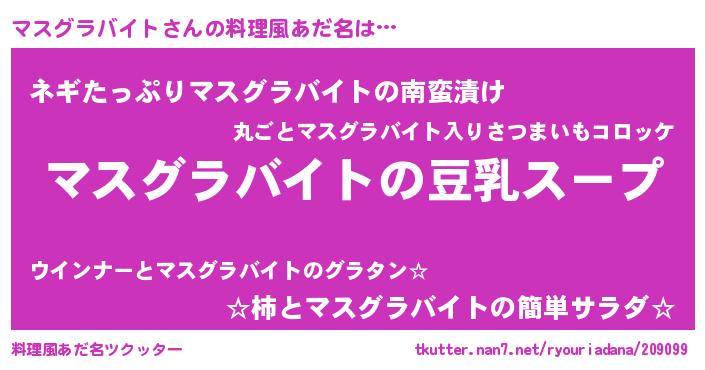 | 意味不明あだ名 | 『とにかく怪しいマスグラバイト』 |