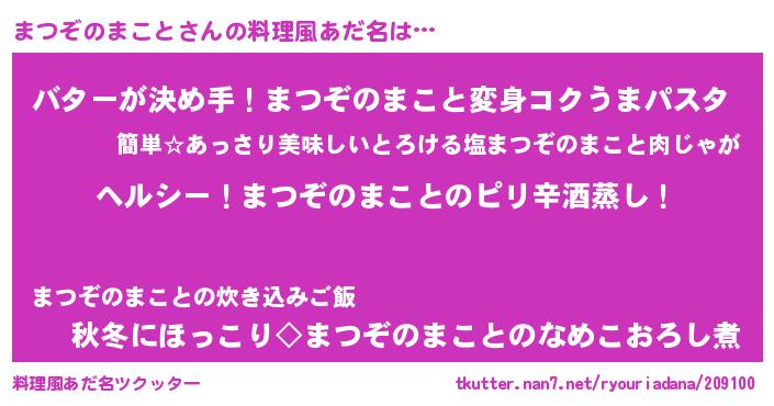 | 男性向けラノベタイトル風あだ名 | 『Re:まつぞのまことから始める異世界生活』 |