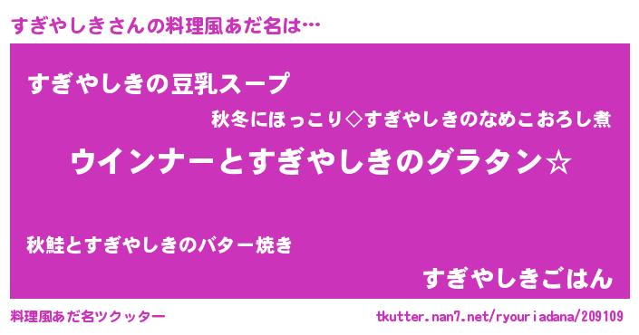 | 意味不明あだ名 | 『すぎやしきフォーエバー』 |