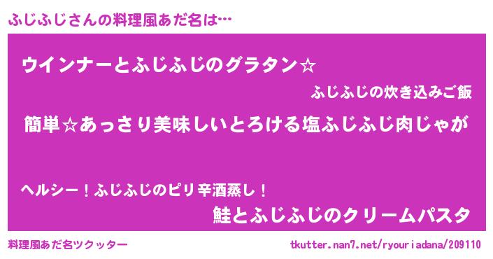 | ヘコむあだ名 | 『ふじふじ(笑)』『なまこ酢』 |