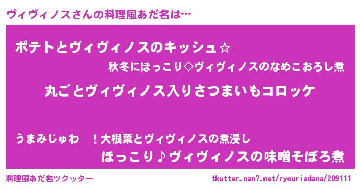 | 意味不明あだ名 | 『住所不定無職ヴィヴィノス(6歳)』 |