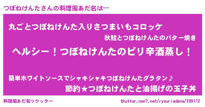 | ヘコむあだ名 | 『つぼにゅー』『つぼねけんた(笑)』 |