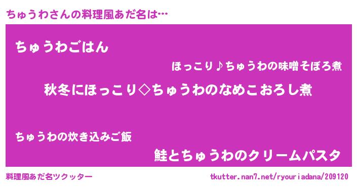 | ヒーロー風カッコイイあだ名 | 『天空の使者ちゅうわ』『炎刃騎士チュ』 |