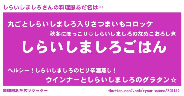 | ヒーロー風カッコイイあだ名 | 『仮面シラダー』『ネオシライシマシロ』 |
