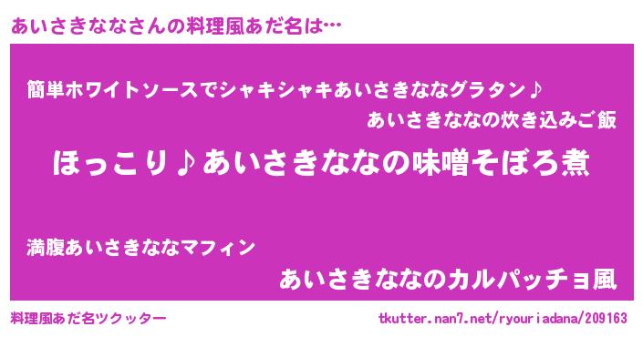 | 胡散臭い通販商品みたいなあだ名 | 『必ず成功するブレスレット…その名も「あいさきなな」』 |