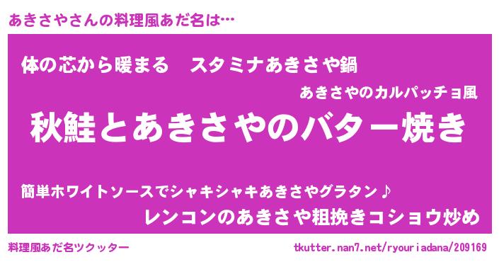 | 意味不明あだ名 | 『永久保存あきさや』『自称あきさや』 |