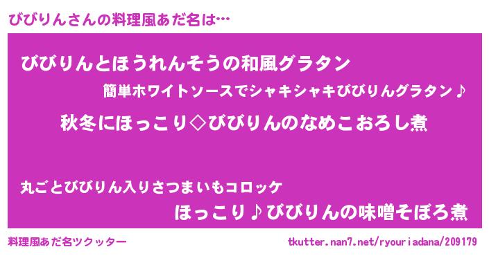 | 可愛いあだ名 | 『びびぷりん』『びんびん』 |