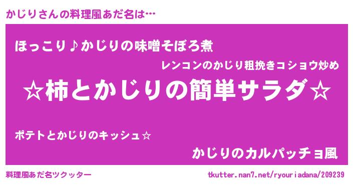 | ヘコむあだ名 | 『かじにゅー』『かじお』『なまこ酢』 |