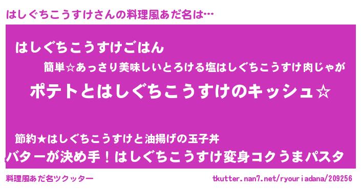 | 男性向けラノベタイトル風あだ名 | 『はしぐちこうすけの嫁は女の子じゃないと思った?』 |
