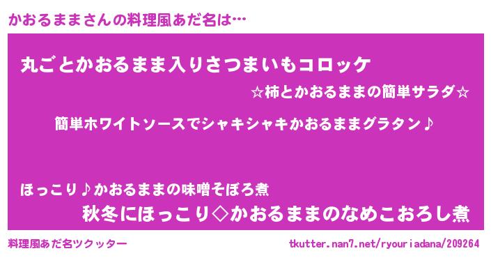 | 男性向けラノベタイトル風あだ名 | 『かおるままの嫁は女の子じゃないと思った?』 |