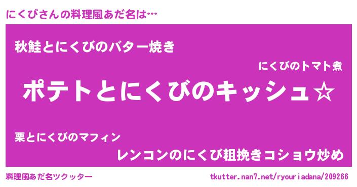 | ヘコむあだ名 | 『にくっぺ』『にくび(爆)』 |