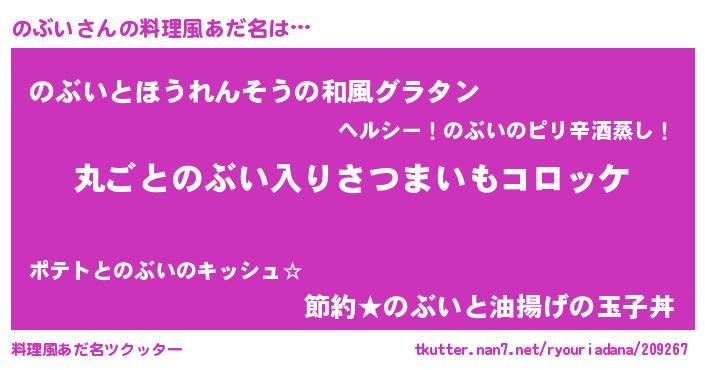 | ピコ太郎風あだ名 | 『ノコ四郎』『ノブ六郎』『ノノ太郎』 |