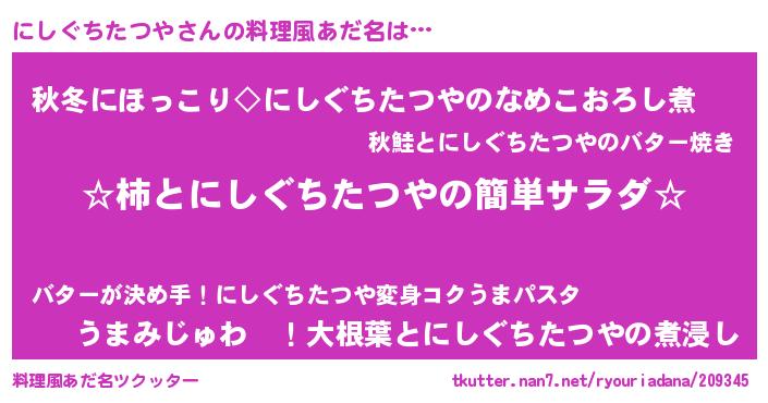 | 意味不明あだ名 | 『にしぐちたつやフォーエバー』 |