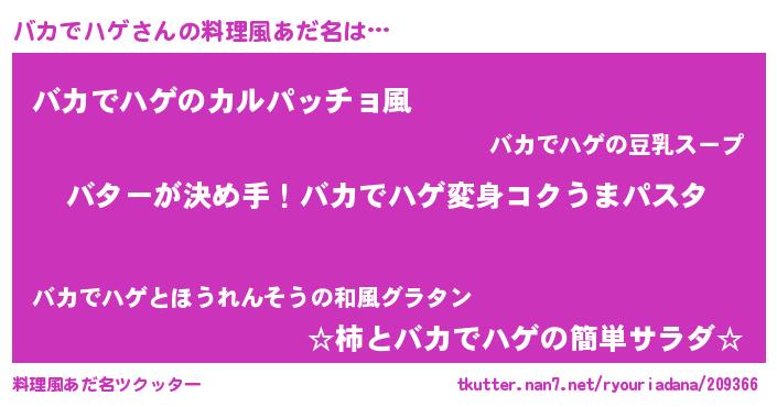 | ヒーロー風カッコイイあだ名 | 『愛の使者バカでハゲ』『仮面バカダー』 |