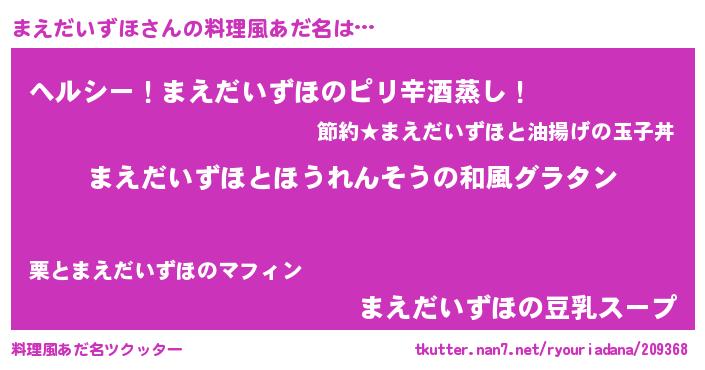 | 女子向けラノベタイトル風あだ名 | 『まえだいずほの玉の輿計画!』 |