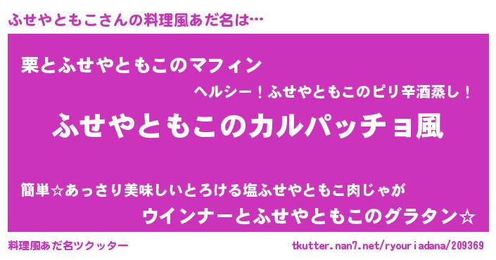 | ヒーロー風カッコイイあだ名 | 『仮面フセダー』『ネオフセヤトモコ』 |