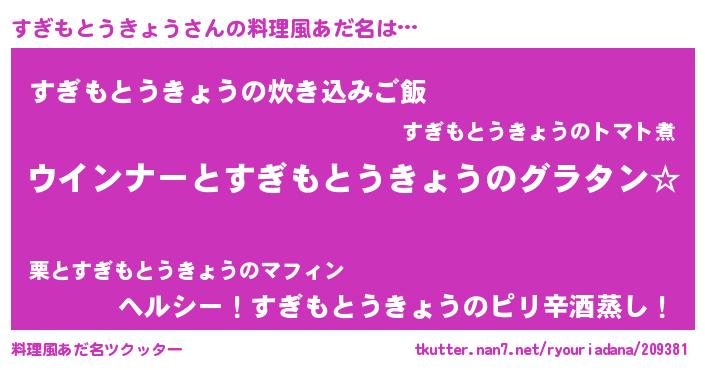 | ファンタジー風あだ名 | 『エターナルスギモトウキョウー』 |