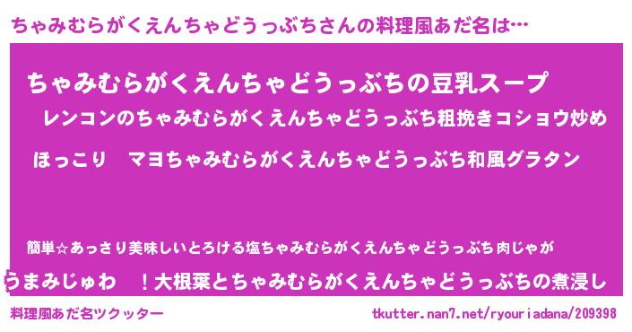 | 男性向けラノベタイトル風あだ名 | 『この素晴らしい世界にちゃみむらがくえんちゃどうっぶちを!』 |