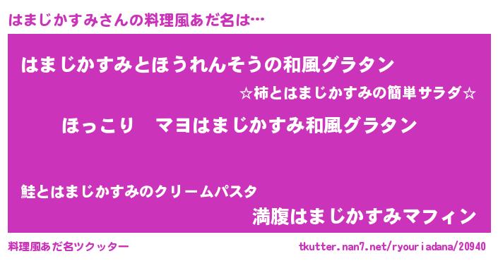 | 意味不明あだ名 | 『住所不定無職はまじかすみ(81歳)』 |