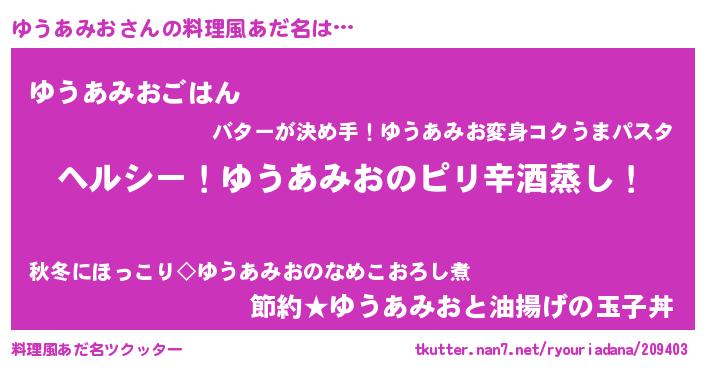 | 欧米人風あだ名 | 『ケンブリッジゆうあみお』 |