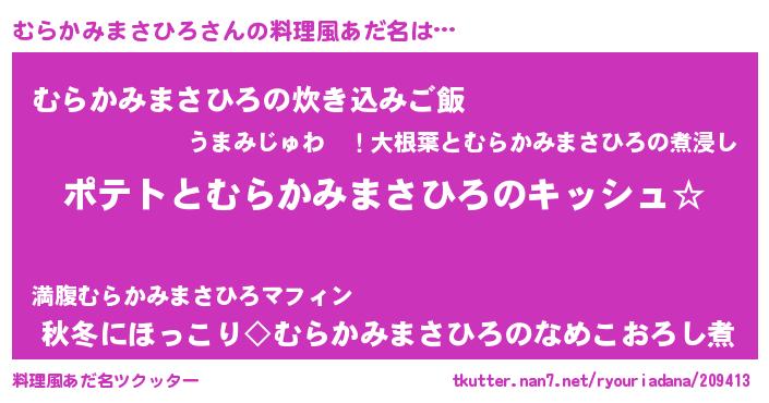 | 男性向けラノベタイトル風あだ名 | 『ダンジョンにむらかみまさひろを求めるのは間違っているだろうか』 |