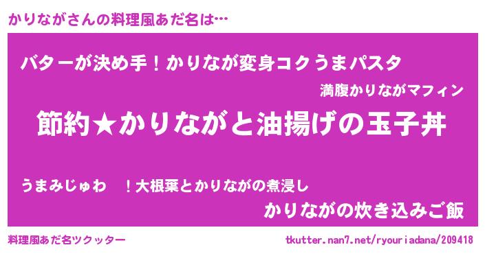 | ヘコむあだ名 | 『かりにゅー』『かりなが(遠い目)』 |