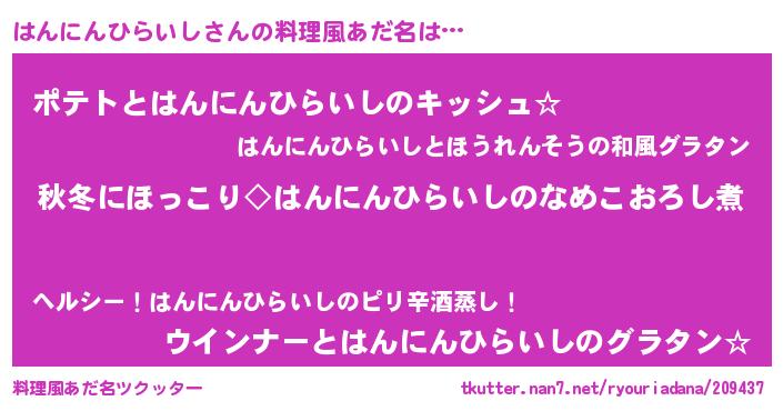 | ポケモン風あだ名 | 『ハンゴンZ』『ヒハンニンヒライシ』 |
