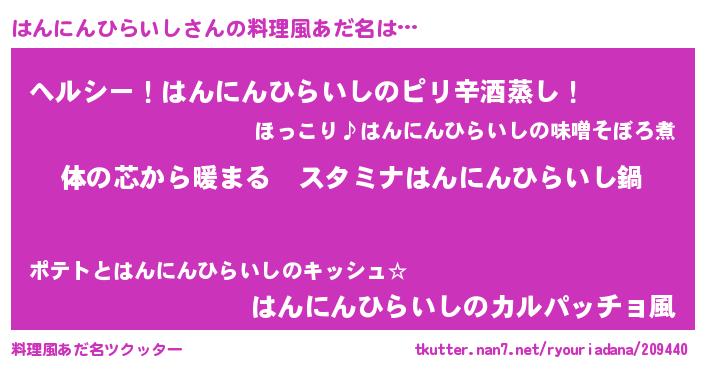 | ヘコむあだ名 | 『つくし』『はんにゅー』『はんっ子』 |
