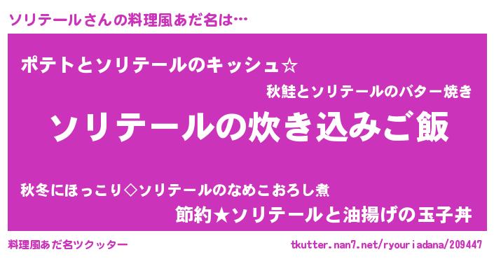 | 意味不明あだ名 | 『とにかく怪しいソリテール』 |