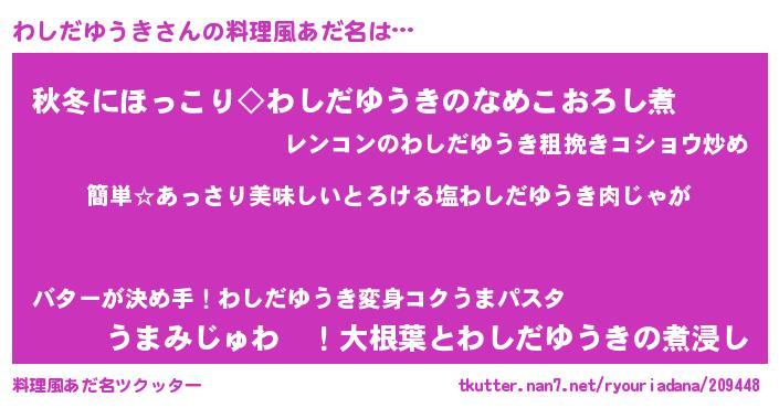 | ヘコむあだ名 | 『わしだゆうき(震え声)』『レバニラ』 |