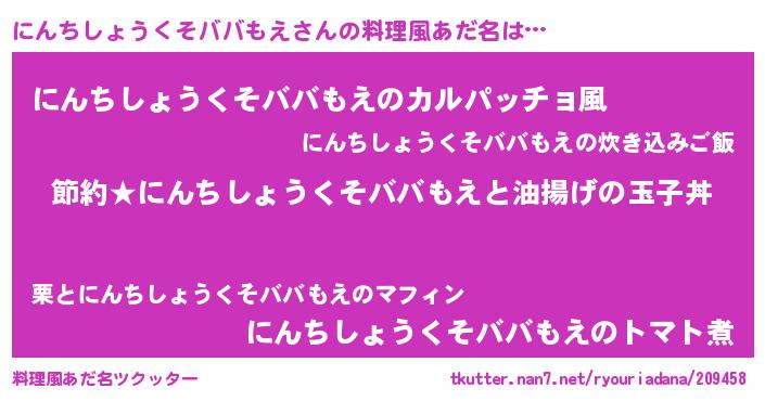 | 恥ずかしいあだ名 | 『プリティーにんちしょうくそババもえ』 |