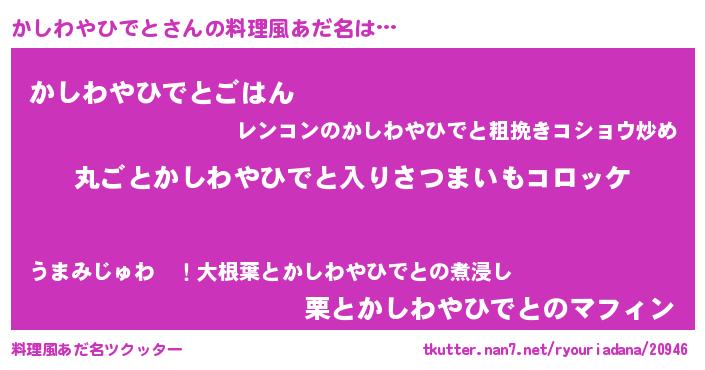 | 男性向けラノベタイトル風あだ名 | 『この素晴らしい世界にかしわやひでとを!』 |