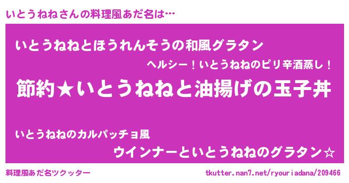 | ヒーロー風カッコイイあだ名 | 『スーパーイトウネネ』『仮面イトダー』 |