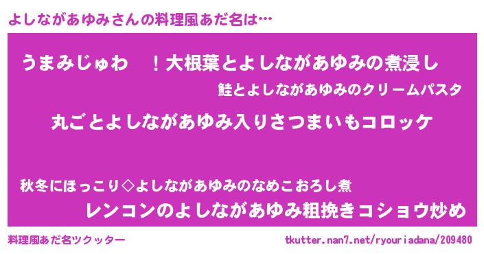 | ヒーロー風カッコイイあだ名 | 『仮面ヨシダー』『ネオヨシナガアユミ』 |