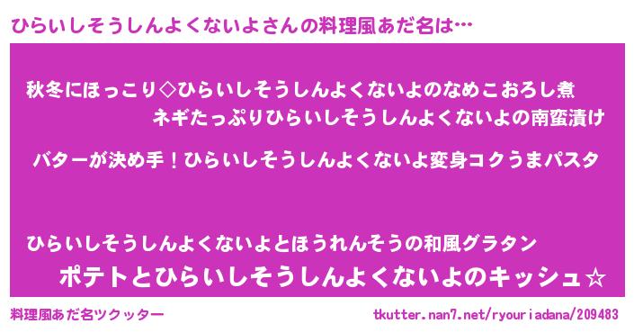 | ヘコむあだ名 | 『ひら太郎』『ひらにー』『なまこ酢』 |