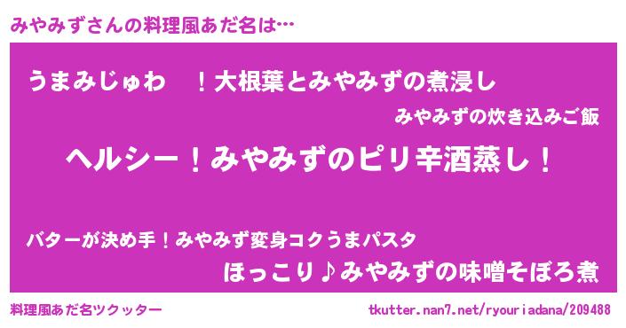 | 意味不明あだ名 | 『自称みやみず』『みやみずフォーエバー』 |
