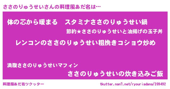 | 女子向けラノベタイトル風あだ名 | 『ささのりゅうせいなんてお断りですっ。』 |