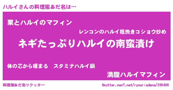 | 意味不明あだ名 | 『ペロリンハルイ』『永久保存ハルイ』 |
