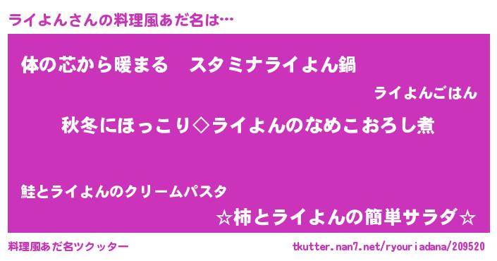 | ヘコむあだ名 | 『酢こんぶ』『ライにー』『ライっ子』 |