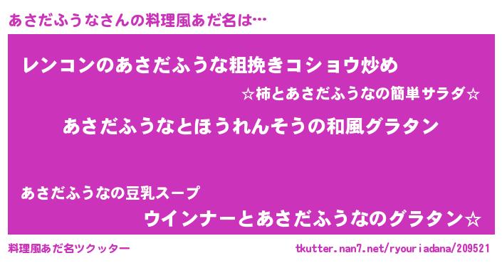 | ヒーロー風カッコイイあだ名 | 『サイバー戦士アサダフウナ』 |