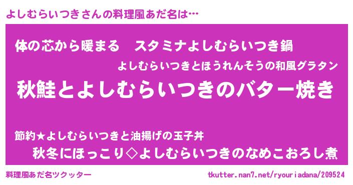 | 意味不明あだ名 | 『永久保存よしむらいつき』 |