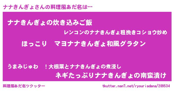 | 男性向けラノベタイトル風あだ名 | 『この素晴らしい世界にナナきんぎょを!』 |