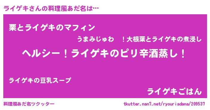 | 意味不明あだ名 | 『自称ライゲキ』『たけのこ科ライゲキ属』 |