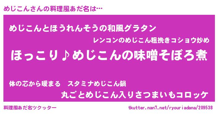 | 意味不明あだ名 | 『ペロリンめじこん』『自称めじこん』 |