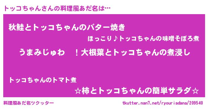 | 意味不明あだ名 | 『トッコちゃんフォーエバー』 |